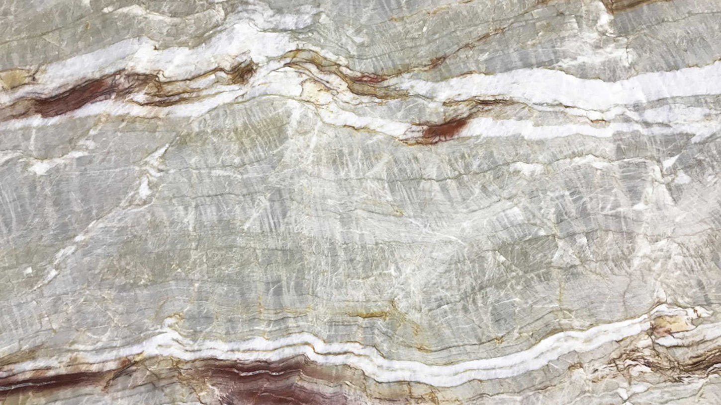 Nacarado Light, is a Brazilian quartzite that looks relaxing for its light grey and beige background and at the same time stunning, as a result of the play of veins in different thicknesses ranging from ivory, white and grey to warmer shades of gold and burgundy. These colours can be accentuated or softened depending on how the material is used. It is ideal for kitchen and bathroom surfaces, where combinations and colour matching are required, but works equally well as a prominent feature with fireplace surrounds and accent walls.