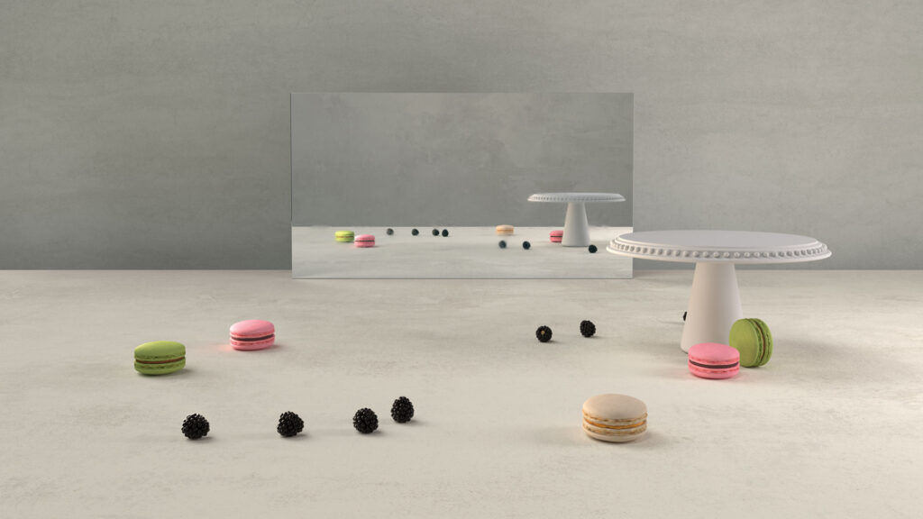 A whitewashed surface softly echoing the patina of concrete and covered with a hazy imprint of a subtle mesh, cloud-like in its warm white presence yet highly tactile and raw in Ultra Rough finish.